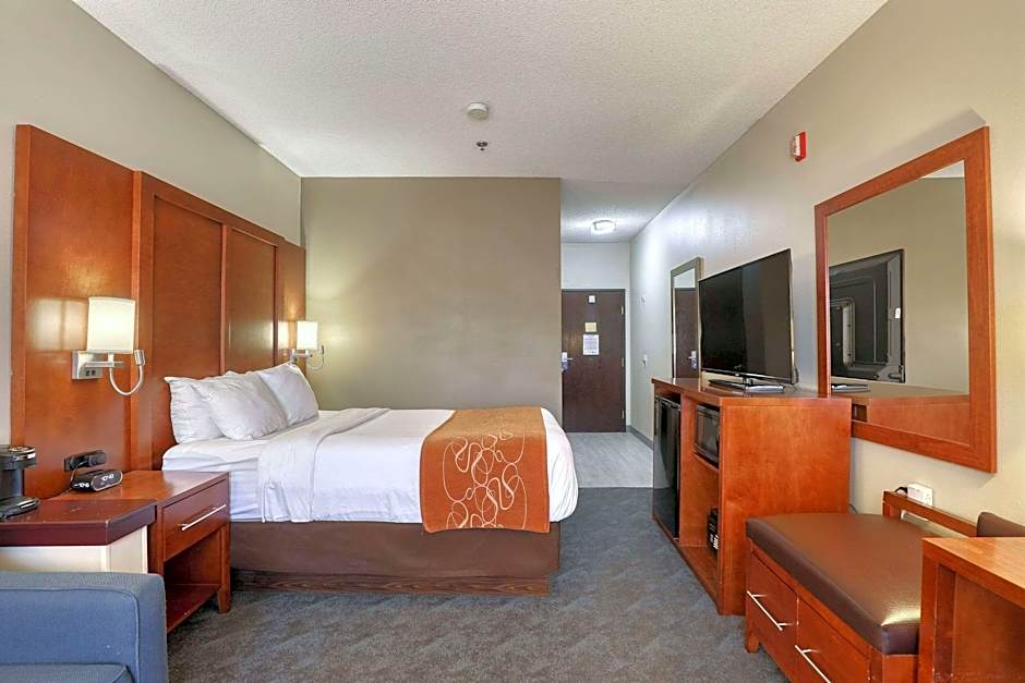 A 32-inch flat-screen TV is offered in this room, along with a microwave and refrigerator.